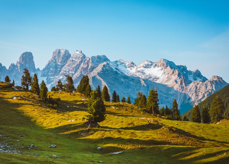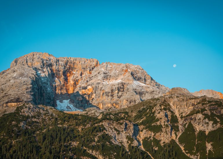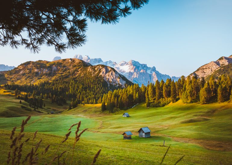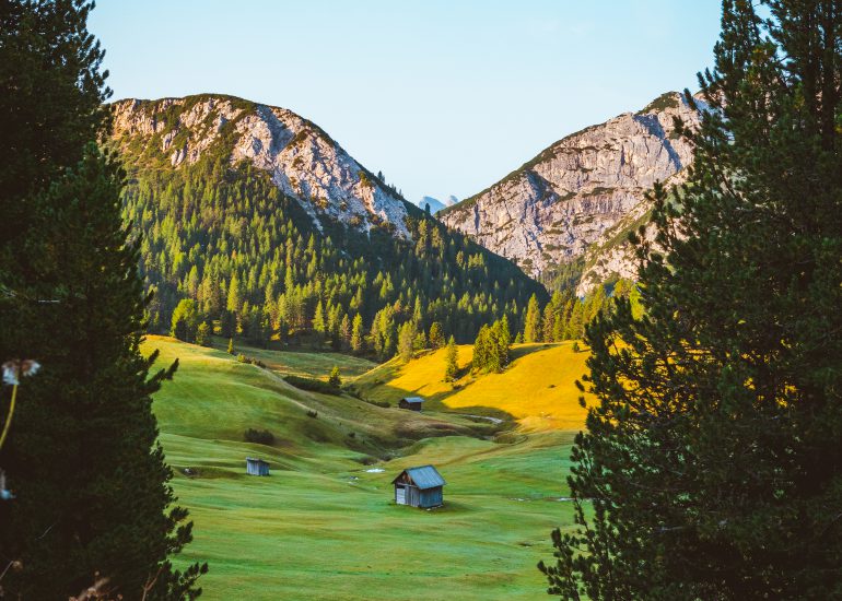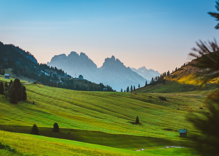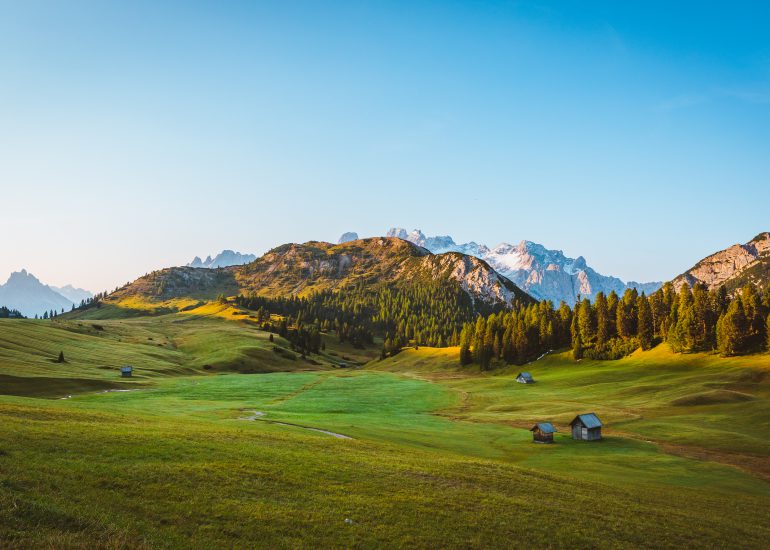 The Prato Piazza is a high plateau in the Braies Dolomites at an altitude of about 2000m. It is an extensive plateau with lush green meadows and a wonderful view of Monte Cristallo. Especially in the morning hours all colours appear especially rich and strong.