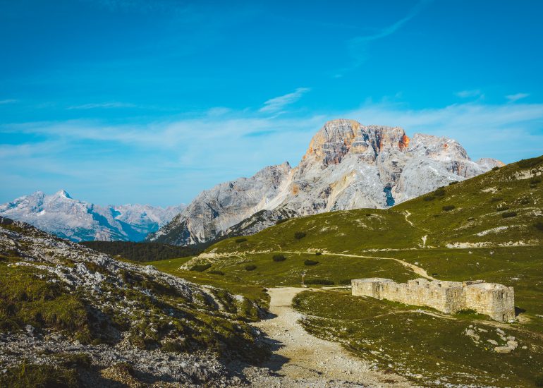 If you walk further along the Prato Piazza to the Dürenstein Hut, you will come to an old Austro-Hungarian barrage, a defence fortification of the Austrians to the south. Of course no longer in operation, it looks very imposing in the landscape.